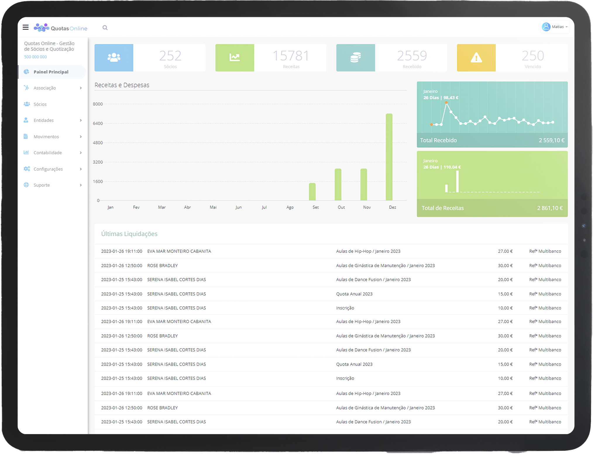 Gerir sócios, quotizações, receitas e despesas será cada vez mais fácil e rápido.